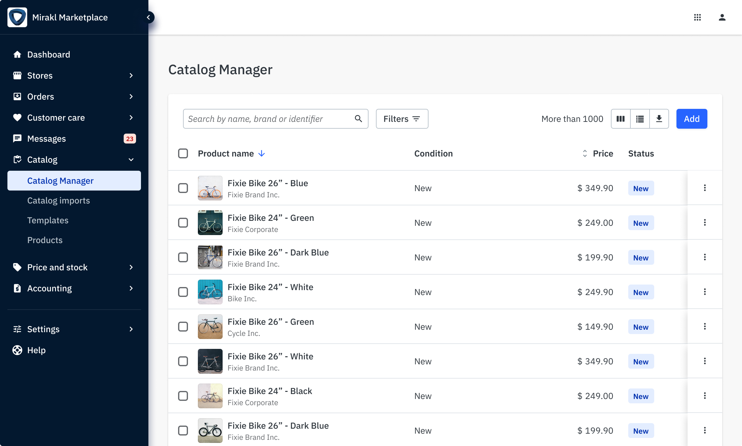 Navigation sidebar appears to the left side of all our products. It showcases all Mirakl key features and enables users to easily switch between activities.
