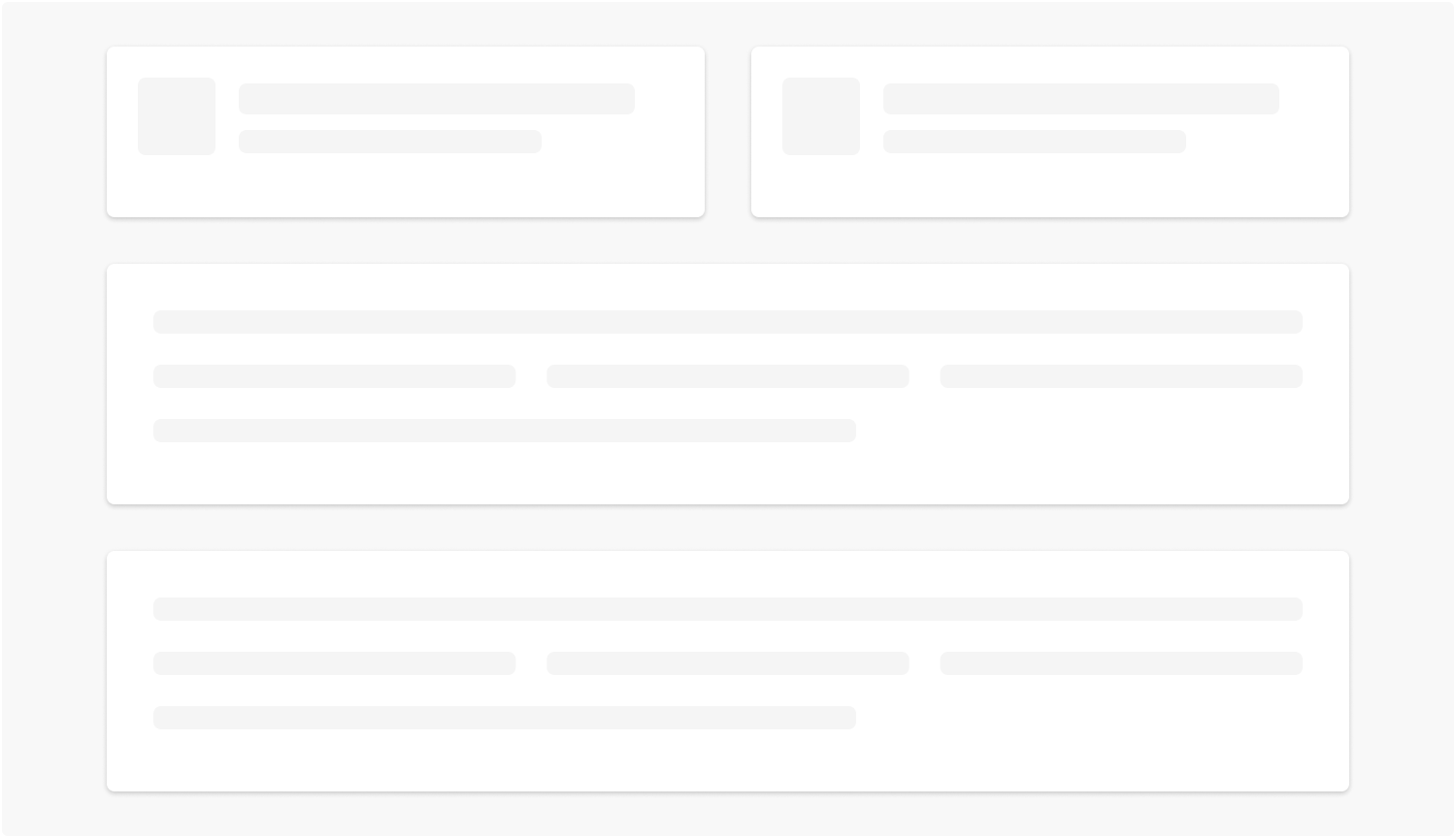 In most cases, we already know what the page will look like when fully loaded; we miss the real data for a few seconds. In those cases, we favor the use of the `Skeleton Loading Pattern`. It provides a low-fidelity representation of the interface. The real content will take the place of the grey skeleton.