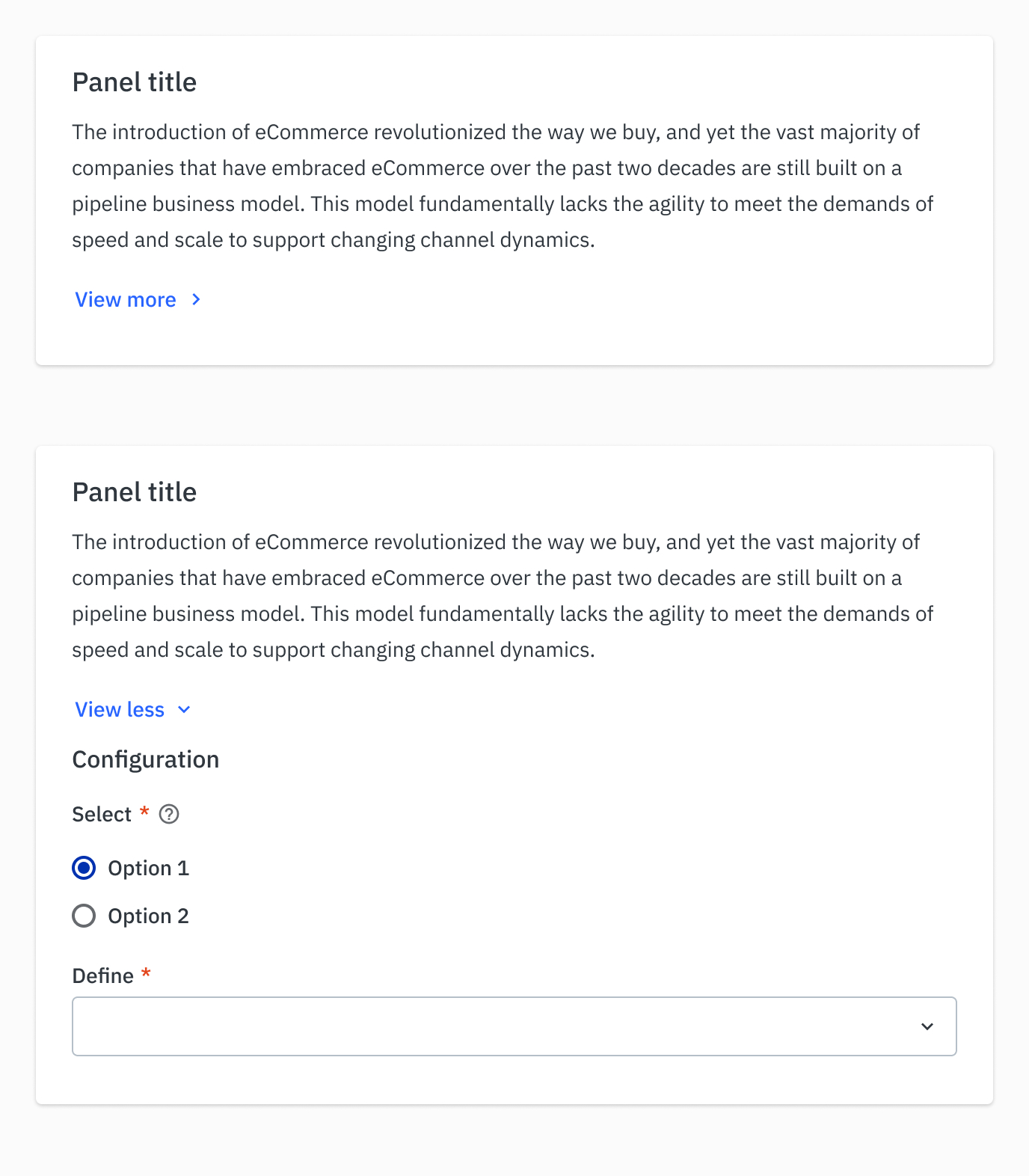 Use panels that expand when clicked, revealing more information. This method keeps pages clear and simple, revealing more content only when needed.